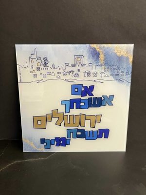 תמונה מרחפת מזכוכית אקרילית (פרספקס) דגם אם אשכחך ירושלים כחול