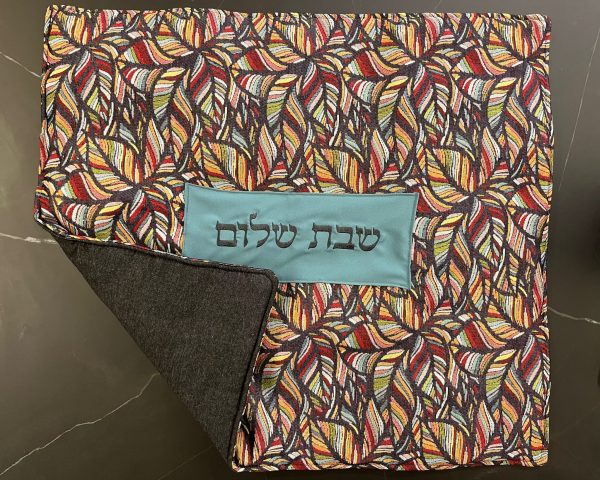 כיסוי לפלטה בגודל 75×65 לשמירת החום, עשוי מבדים איכותיים ומשולב ברקמת “שבת שלום” במרכז.