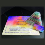 מארז לחנוכה המכיל פלייסמנט מעוצב להנחת החנוכיה, קופסת גפרורים ארוכים תואמת וחבילת שמן מוצק צבעוני להדלקה